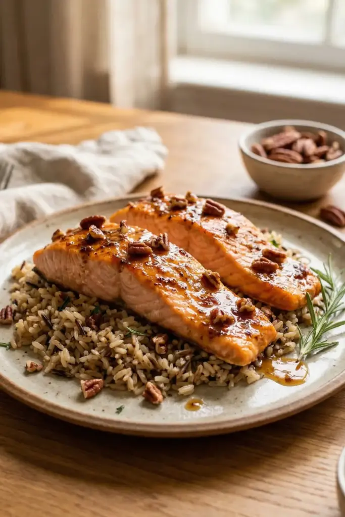 • Spoon the savory pan juices right over your bed of nutty wild rice.