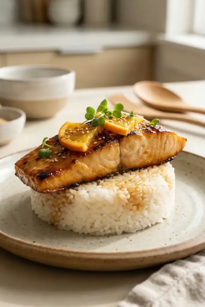 15. Soy Citrus Yellowtail Over Sticky Rice