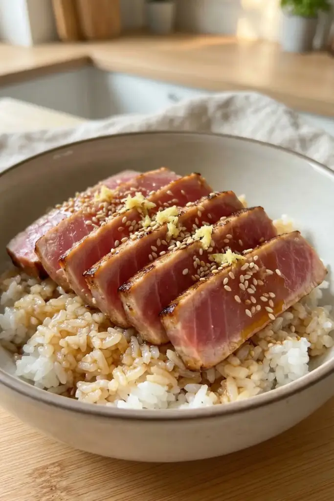 4. Sesame Ginger Tuna Steaks Over Sushi Rice