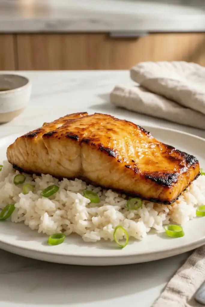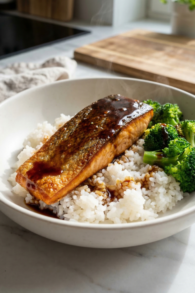 • Pour the warm homemade teriyaki directly over the perfectly cooked fish fillets.