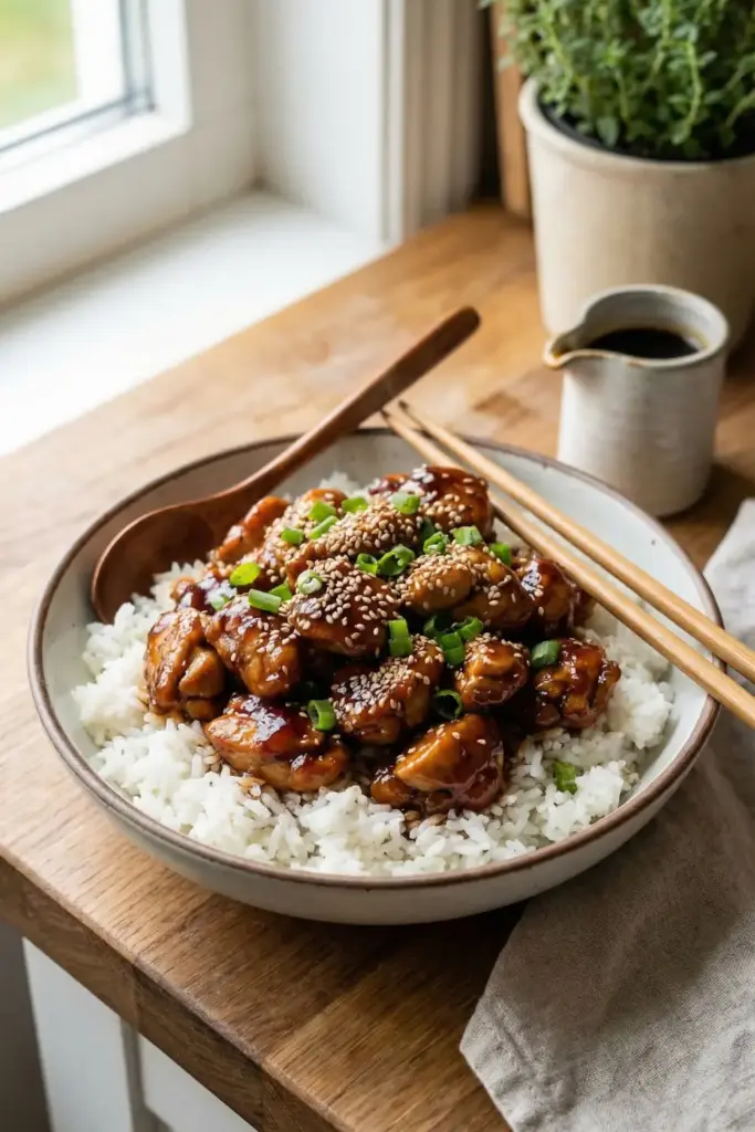 - Base: Steamed jasmine rice absorbs the sauce perfectly.