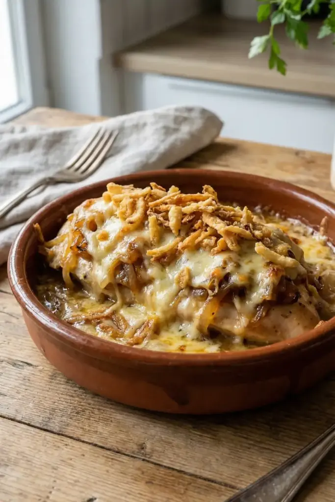 Caramelized onions and beef broth give the poultry a deeply rich, savory crust.