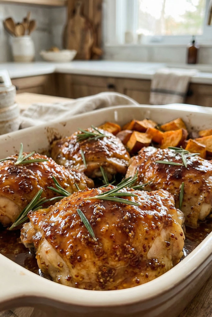 Real honey and grainy mustard create a sticky glaze that caramelizes beautifully.