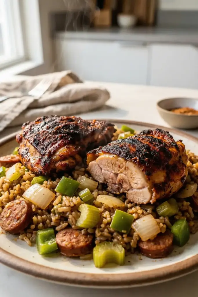 Bold Cajun seasoning blackens the meat beautifully as it slow-cooks to perfection.