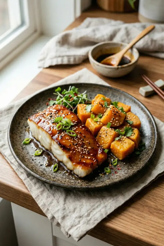 5. Sweet Potato Chashu and Asian Glazed Sea Bass